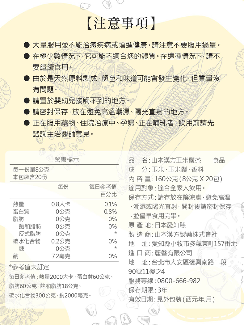 ◆ 嚴選「100%北海道生產的玉米鬚及玉米胚芽」製成,讓您吃的健康又安心。