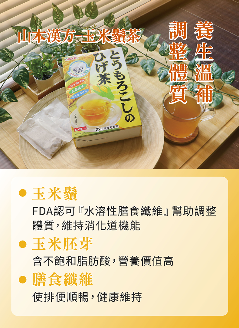 玉米鬚茶主要功效:有助於維持正常的水分代謝、助排便、含膳食纖維