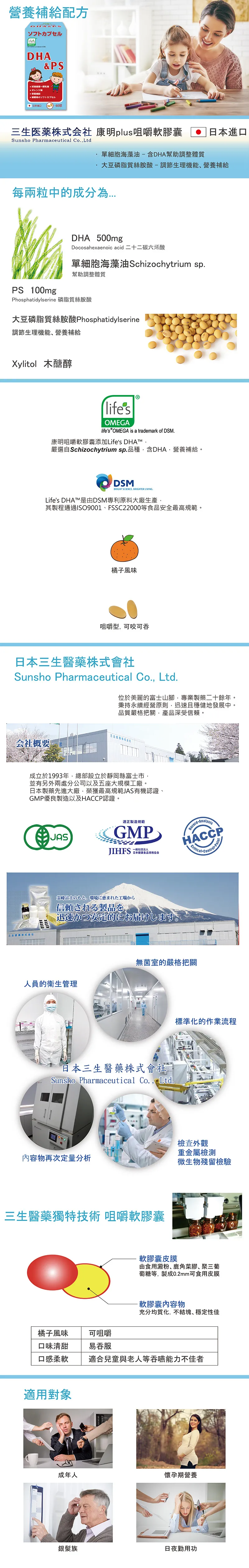 康明Plus咀嚼軟膠囊採用日本先進技術,將珍貴的海藻DHA與大豆磷脂質絲胺酸(PS)結合,