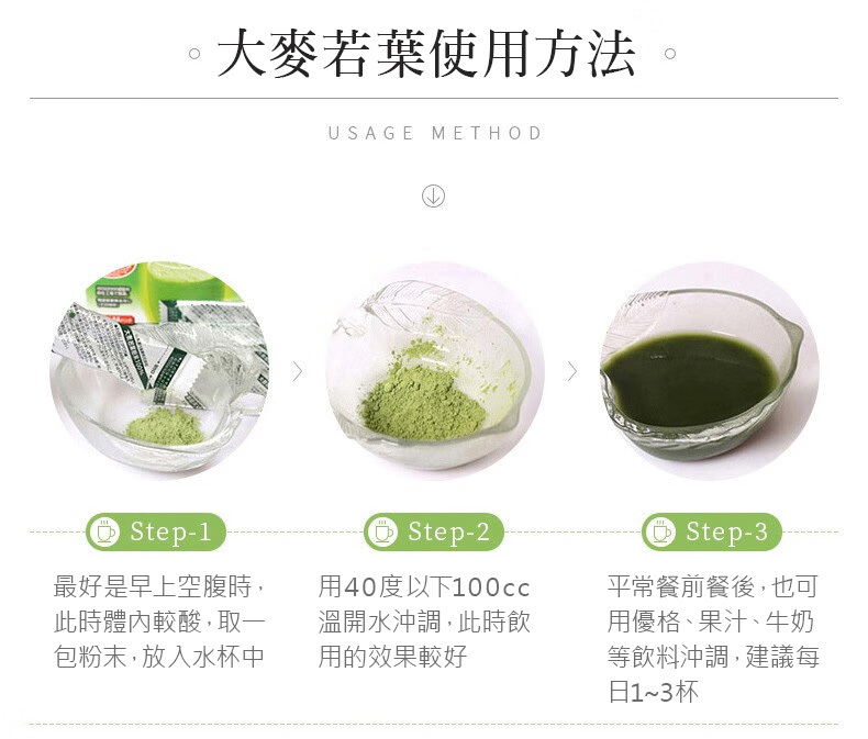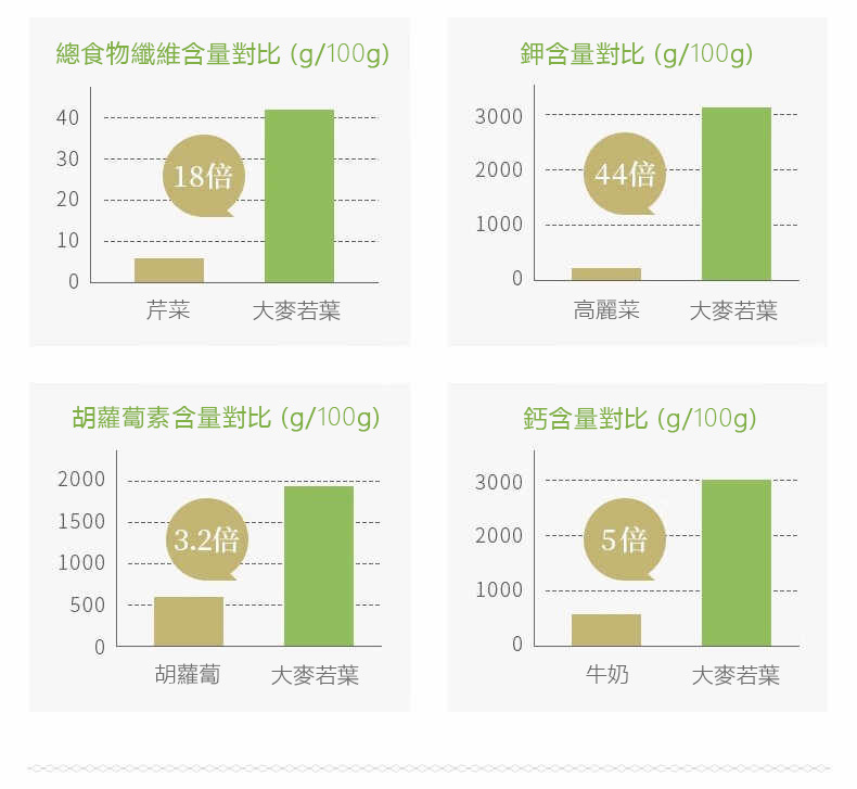 u 大麥若葉含有膳食纖維,能促進腸道蠕動、使排出便超出,更豐富的營養成分及營養,能一次補足身體所需。